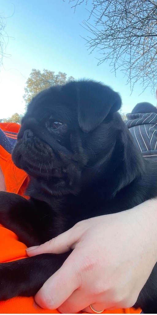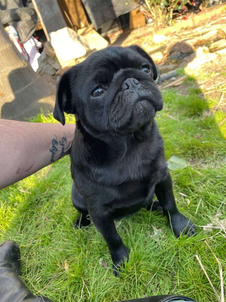 Prof Winston will make sure your girl is plenty well looked after, and that she has a belly full of purebred pug puppies. He is completely genetically healthy, like his mum and dad, and all our boys and girls.